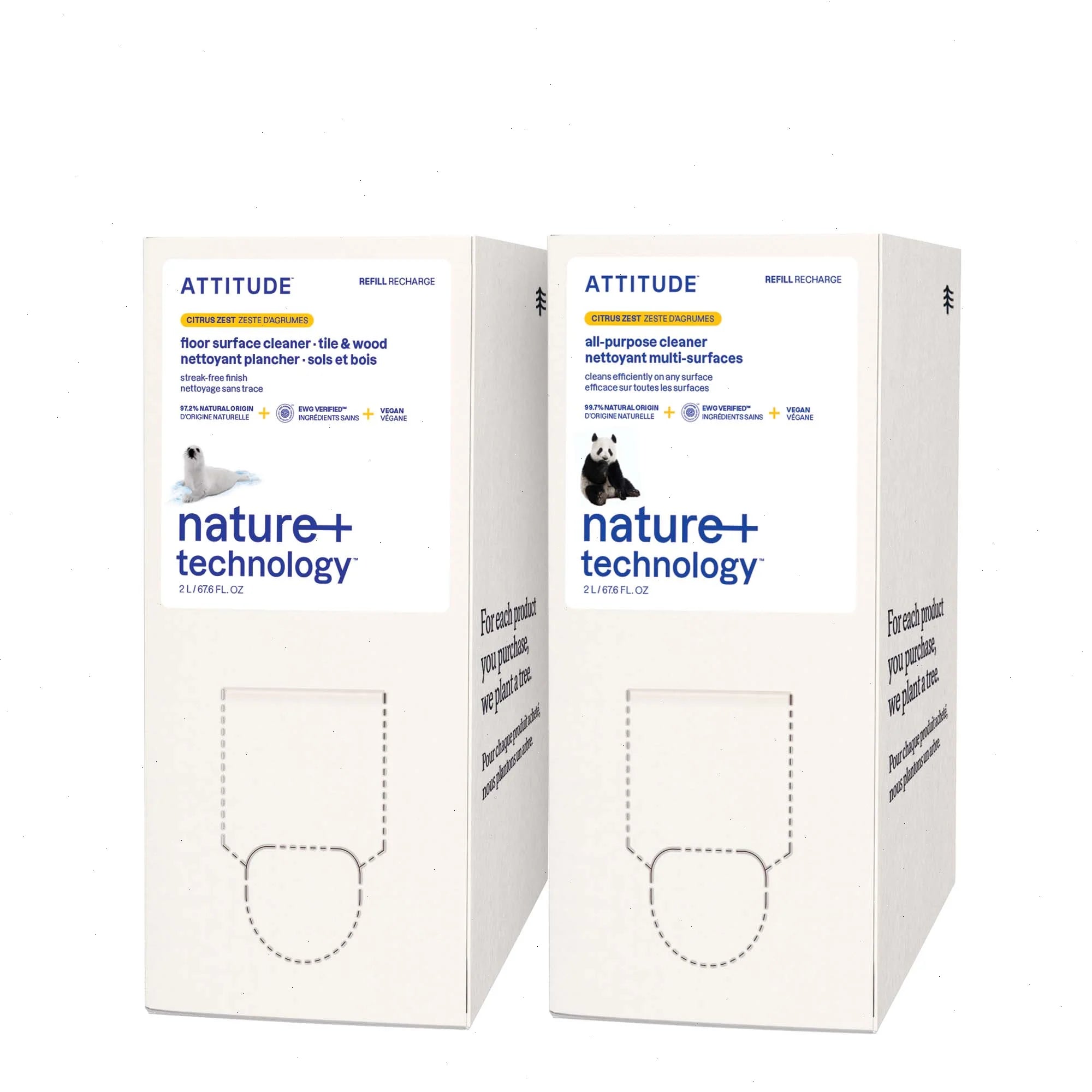 "Formulated with 94% of natural-origin ingredients, these cleaners products will become your must-have for a sparkling-clean home. The all purpose cleaner, that eliminates dirt and dust without leaving any streaks, can be used on most surfaces, indoors and out. The tile floor cleaner dissolves stubborn dirt and grime to reveal the natural beauty of your floors. The invigorating top notes of citrus blend harmoniously with the floral, herbaceous dimension of lavender. EWG-certified, vegan and cruelty-free formulas come in easy-to-carry 2-liter eco-refills for sparkling clean surfaces.