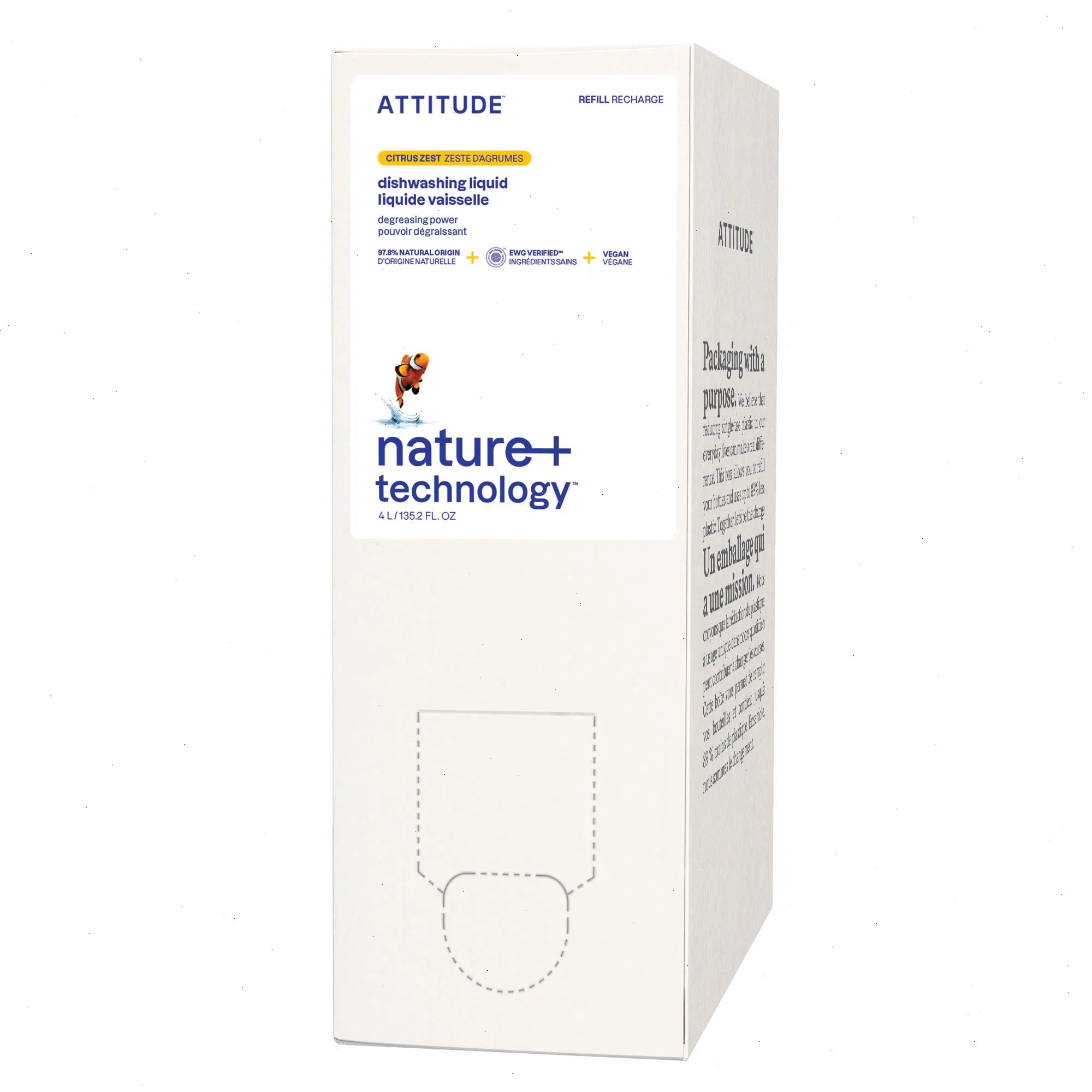 Infused with a crisp and refreshing aroma, ATTITUDE™ dishwashing liquid – Citrus zest with foaming action eliminates grease and residue.