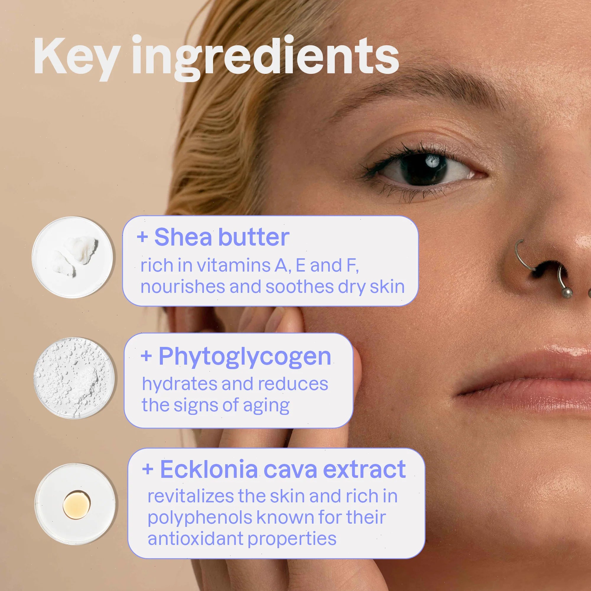 Formulated with 99.9%* natural origin ingredients, PHYTO-CALM eye cream relies on the extraordinary virtues of our most soothing ingredients to relieve the sensitive skin around the eyes: shea butter rich in vitamins A, E and F to nourish dry skin, ecklonia cava extract from polyphenol-rich algae known for its antioxidant properties and comfort-restoring phytoglycogen. The result: a skincare that nourishes and soothes the eye contour area.