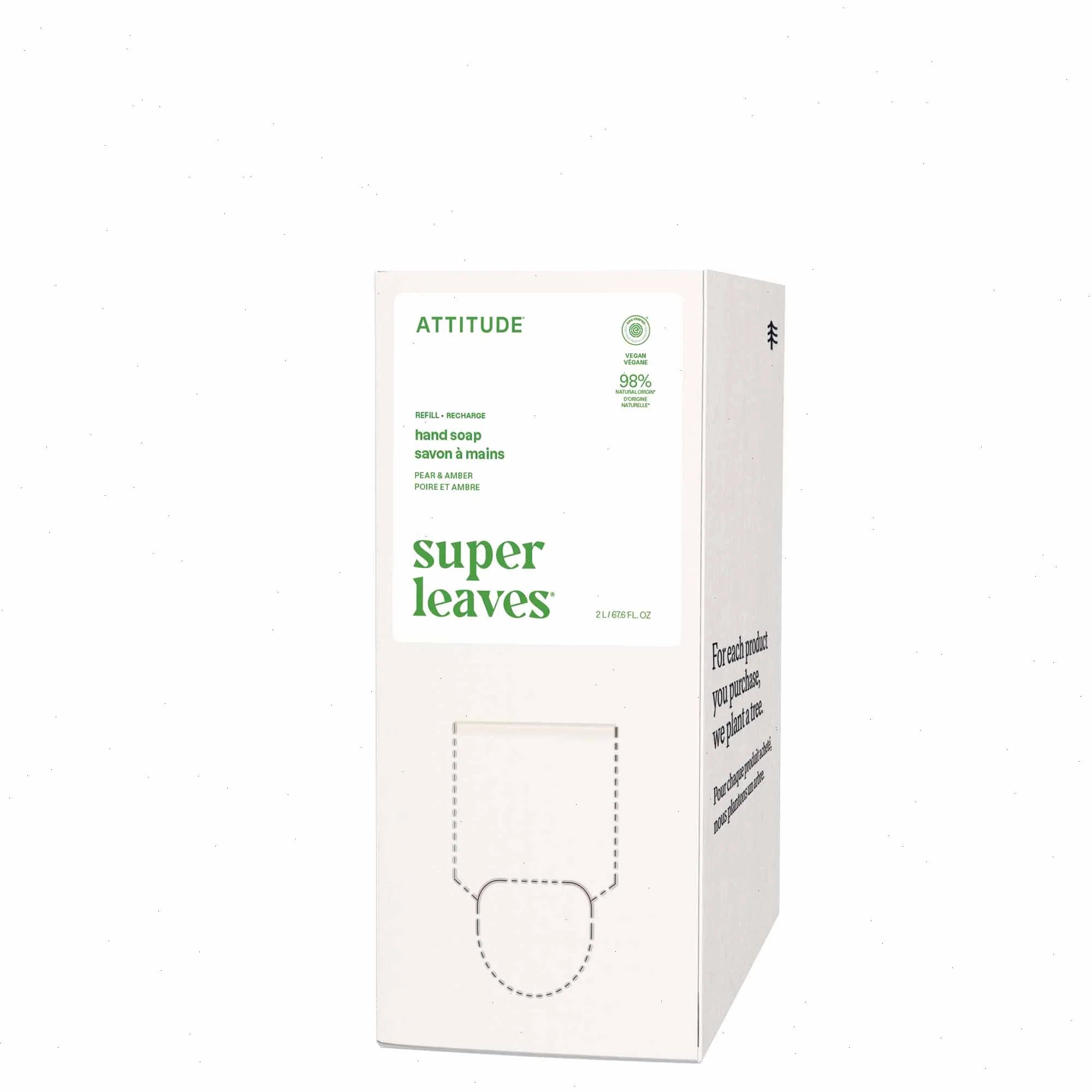 ATTITUDE™ vegan Soothing hand soap – olive leaves gently cleanses your hands. Formulated with 98.9% naturally sourced ingredients* including olive leaves extract to improve the appearance of dry skin and restore its suppleness. EWG VERIFIED™ and dermatologically tested, this cleansing soap is enriched with watercress and Indian cress to revitalize skin and keep it healthy. Infused with a gentle pear fragrance with invigorating nectarine and ginger notes, it eliminates impurities and makes hand washing a joy. Its eco-refill format is easy to carry and use at home.