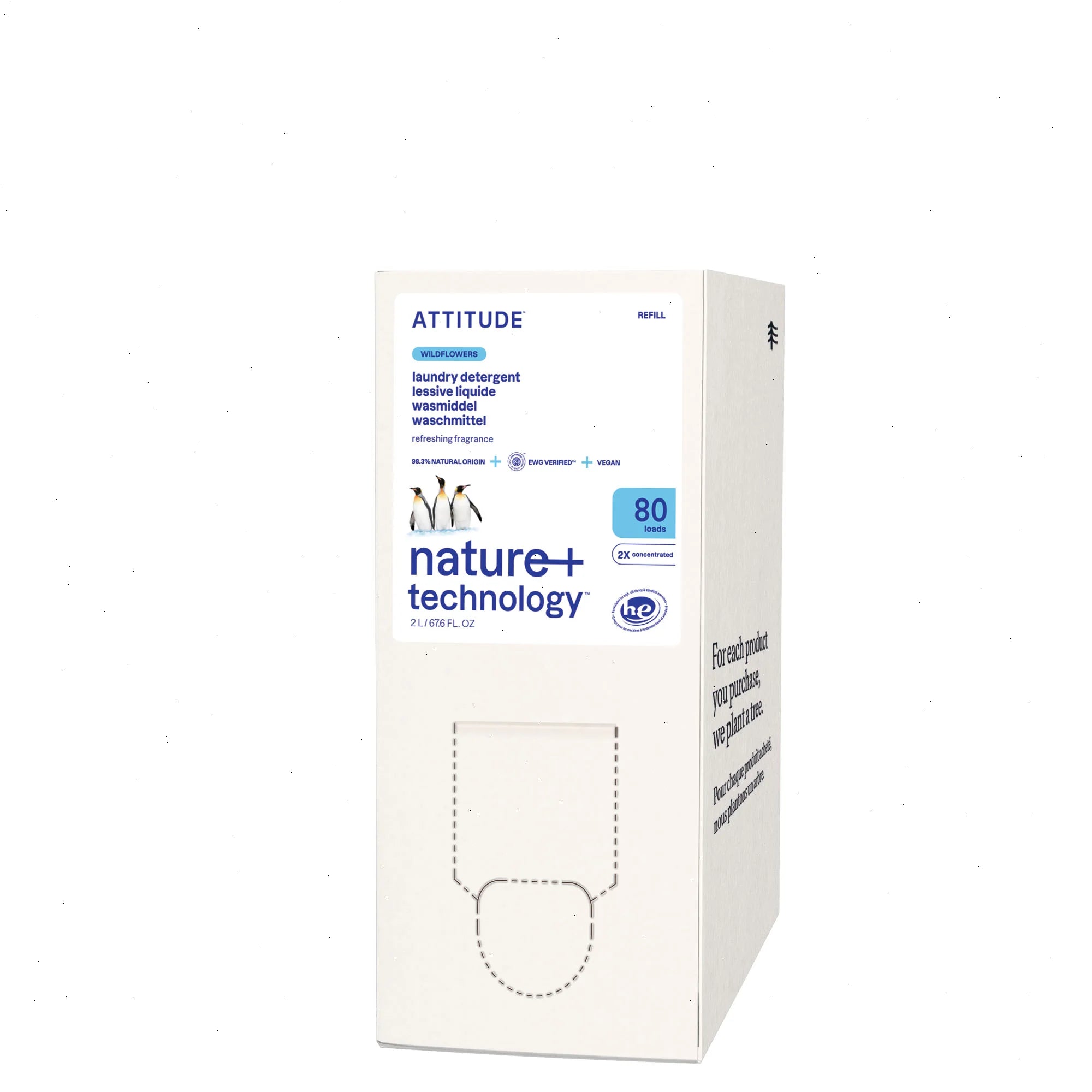 Formulated with 98% naturally derived ingredients, ATTITUDE™ laundry detergent packs excellent detergent power and is free of enzymes. The orange blossom and vanilla perfectly balance the wood aroma, which anchors the fragrance in perfectly sweet and floral notes. It’s a symphony of scents that leaves your laundry smelling like a bouquet of wildflowers. Its concentrated formula allows you to do more loads while using the same amount of detergent. Our laundry detergent is effective for cold water wash, saving you energy. Its vegan formula is certified by PETA and is offered in a 2L eco-refill format that’s easy to carry and use at home.