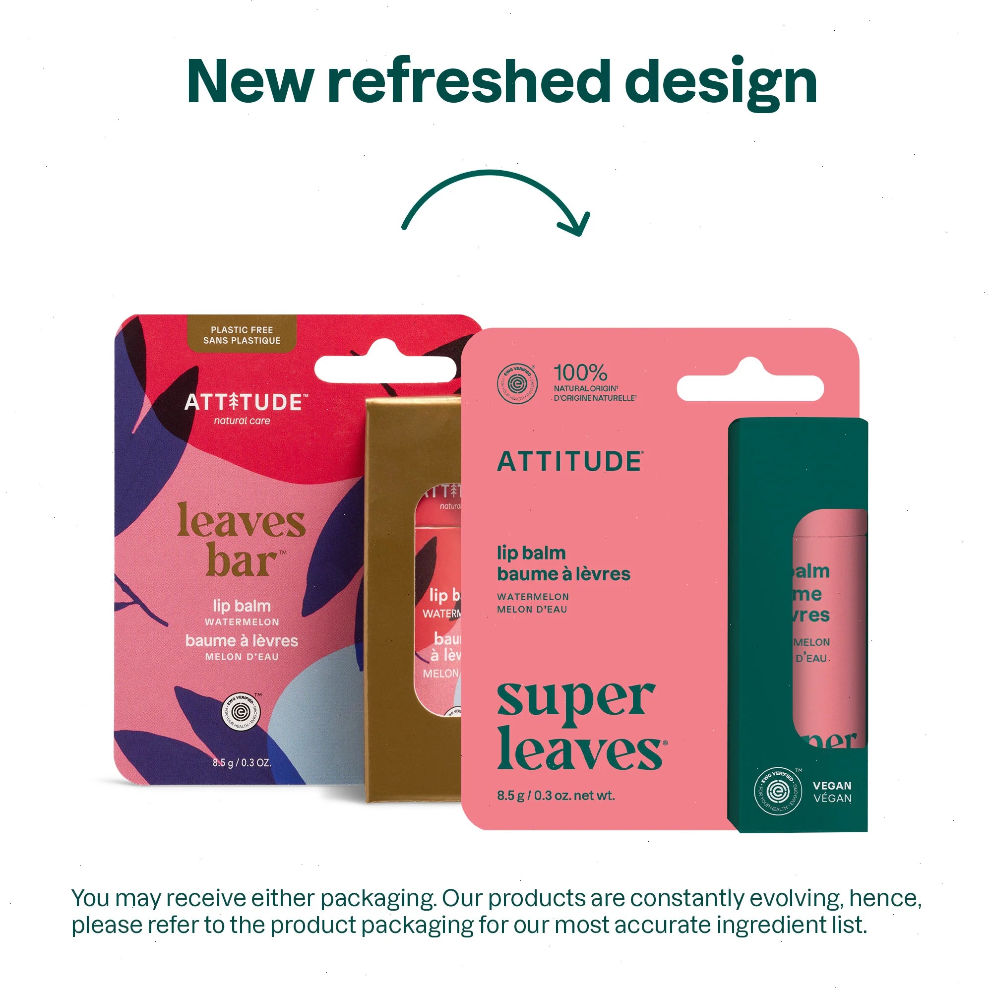 Balm away the dryness and leave lips blissfully buttery with our ATTITUDE leaves bar™ Lip Balm – Watermelon. Featuring a refreshing watermelon aroma and a combo of nourishing agents like shea butter, grapeseed, coconut and castor oils, for silky smooth lips! Plastic-free, EWG VERIFIED™ and vegan, our biodegradable solid lip balm is perfect to carry on-the-go and a great way to care for your lips while caring for the environment.
