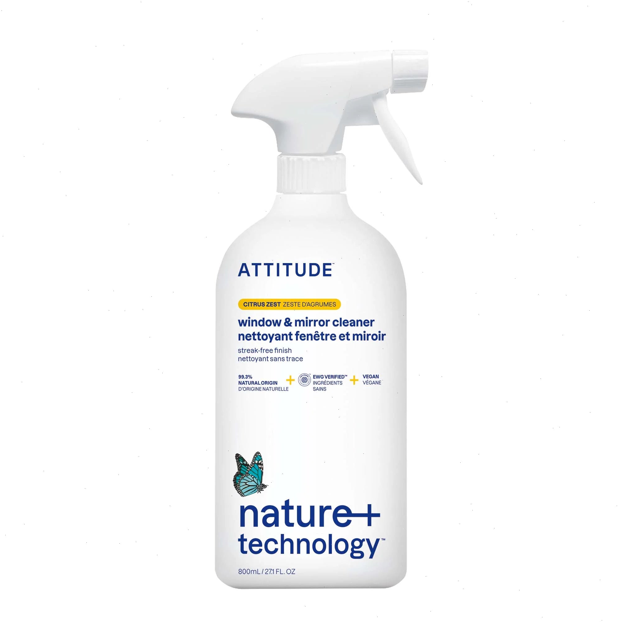 Formulated with 99% naturally derived ingredients, ATTITUDE™ window & mirror cleaner – citrus zest quickly eliminates grease and dirt from glass and mirrors. Its invigorating citrus top notes blend harmoniously with floral and herbaceous lavender. It comes in a bottle made from HDPE #2 plastic—the easiest plastic to recycle. An EWG VERIFIED™, vegan and cruelty-free formula for hassle-free daily use.